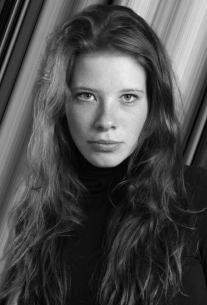 Dieses Bild stammt aus einer Versuchsserie, bei der wir auch den Hintergrund komplett automatisch generieren wollten. Der Hintergrund entstand aus einem wenige Pixel hohen Schnitt von Auge zu Auge des Models. Dieser Streifen wurde dann auf die erforderliche Größe skaliert und um ein paar Grad schräg gestellt räumlich in den Hintergrund gelegt.