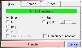 Für den Output haben Sie die Wahl zwischen verschiedenen Grafik-Formaten. Bei CMYK Daten steht nur TIF zur Verfügung. Das PNG Format wird automatisch gewählt, wenn das Resultat größer als 4GB ist oder 32.000 Pixel auf einer Seite überschreitet. Die Berechnung des Interlacings dauert in diesen Fällen vergleichsweise lange. Wählen Sie Ihr Ausgabeformat und klicken Sie "Render" um das Interlacing zu erstellen. Eine Statusanzeige informiert über den Stand der Berechnung.