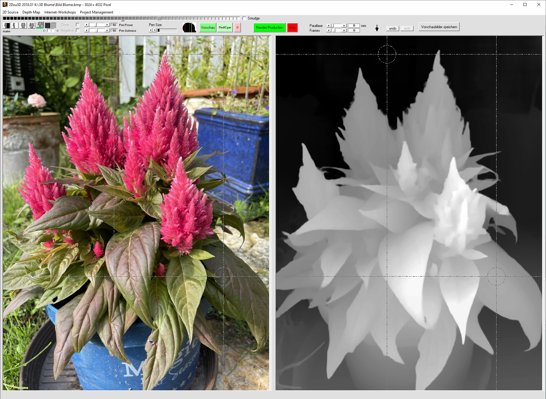 Wenn Sie an einem einfachen 2Dzu3D Konverter (für Windows PC) interessiert sind, der auch gleich das Interlacing macht und das Ergebnis druckt, erfragen Sie Details per e-Mail.